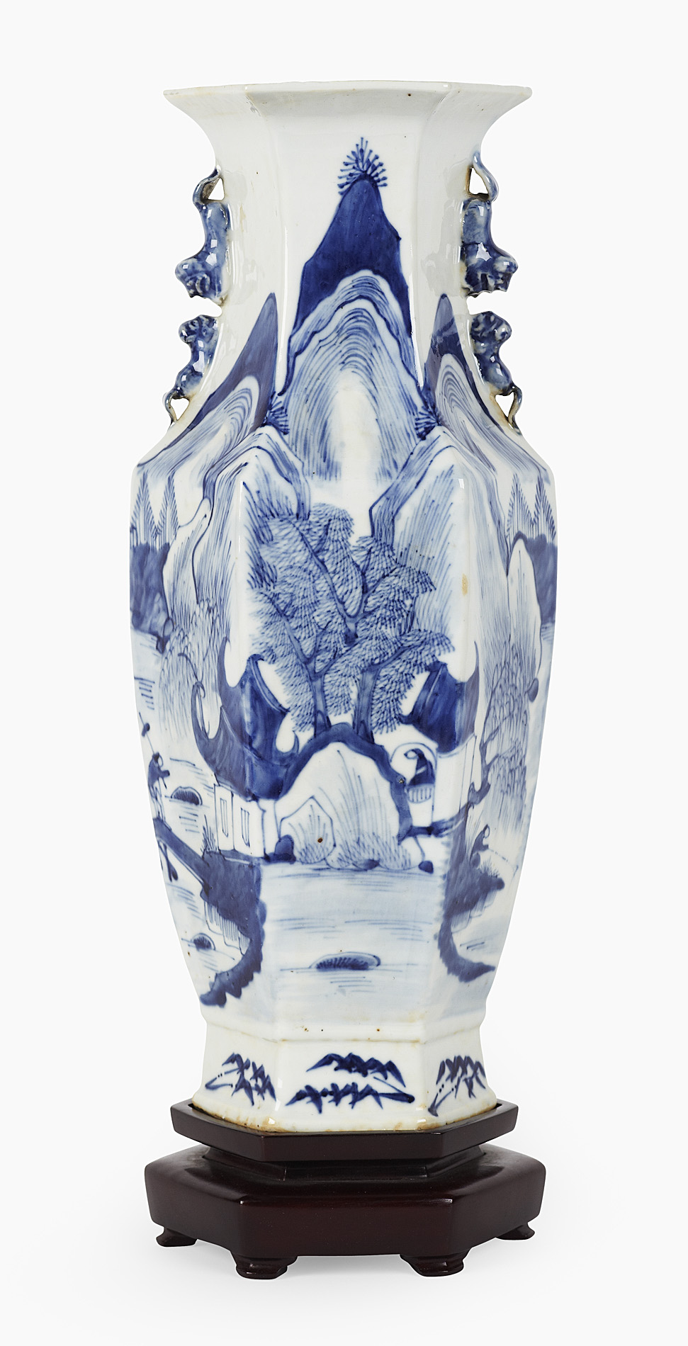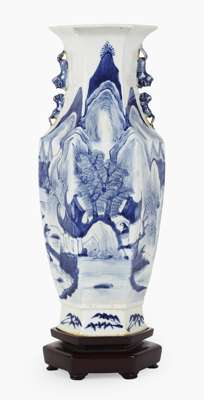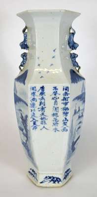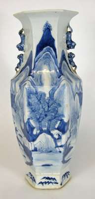 CHINESE BLUE AND WHITE HEXAGONAL VASE