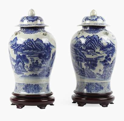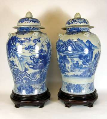 PAIR OF LARGE CHINESE PROVINICIAL BLUE AND WHITE JARS AND COVERS