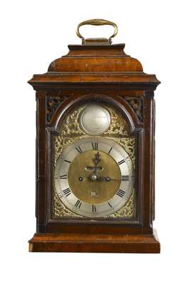 GEORGE II MAHOGANY BRACKET CLOCK AND BRACKET