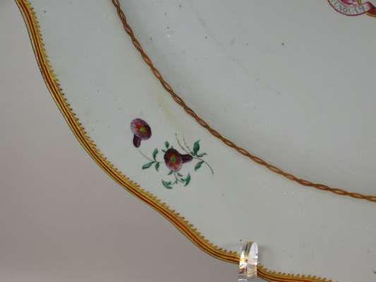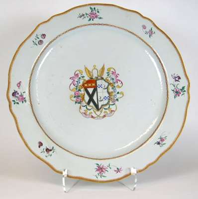 CHINESE EXPORT FAMILLE ROSE ARMORIAL SAUCER DISH