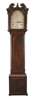 the swan neck pediment with brass mounts and centred by a brass finial, over an arched silvered dial with Roman and Arabic chapters, Strike/ Silent aperature, and a subsidiary seconds dial, signed 'John Scott/ Edinburgh' and flanked by fluted columns, with 8 day movement; the trunk with a shaped door flanked by quarter columns, on a panel base