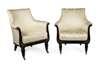 PAIR OF REGENCY EBONISED AND UPHOLSTERED LIBRARY CHAIRS