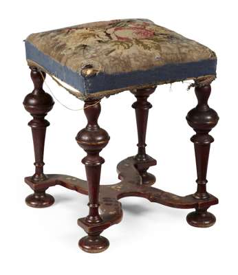 WILLIAM & MARY RED JAPANNED FOOTSTOOL