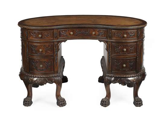 GEORGE II STYLE MAHOGANY RENIFORM DESK BY MAPLE & CO.