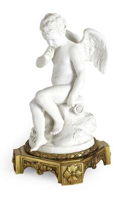 FINE SEVRES BISQUE PORCELAIN AND GILT BRONZE MOUNTED FIGURE 'L'AMOUR MENACENT', AFTER ETIENNE-MAURICE FALCONET (1716-1791)