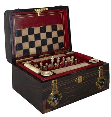 RARE SOUTH GERMAN EBONY AND IVORY INLAID GAMES BOARD