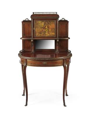 FINE LOUIS XVI STYLE SATINWOOD AND VERNIS MARTIN SECRETAIRE