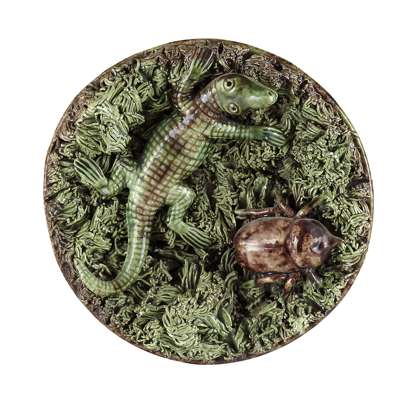 FOUR PORTUGUESE PALISSY STYLE PLATES