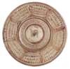 the raised central boss within bands and a lobed border painted with stylised motifs