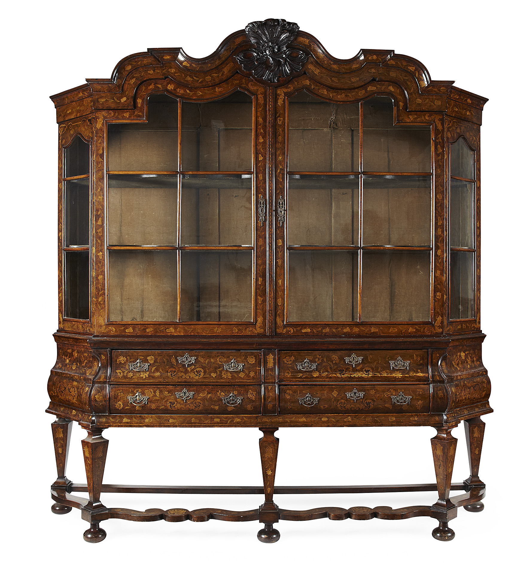 DUTCH WALNUT AND MARQUETRY DISPLAY CABINET