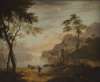 AN ITALIANATE COASTAL VIEW WITH FISHERMEN UNLOADING THEIR CATCH