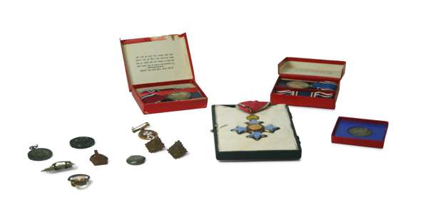 including C.B.E., Military 1935; Geo V silver Jubilee medal in box; Geo VI 1937 coronation medal in box; commemorative silver Jubilee Medal 1910-35; St John Ambulance War Service badge in gilt; Honorary British Legion badge, the last two to Lady Rochdale (8)