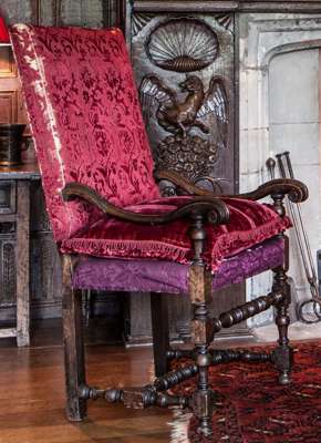 CHARLES II WALNUT AND UPHOLSTERED ARMCHAIR