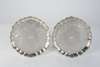 with a piecrust edge and foliate engraved decoration, engraved central double crest, raised on three leaf clasped scroll feet