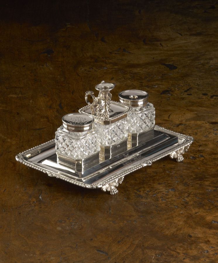 A Regency silver desk inkstand