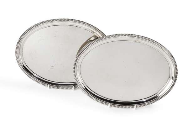 A pair of George III oval silver waiters