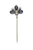 millegrain collet set to one end with three pear cut sapphires, round brilliant and single cut diamonds, the opposite terminal similarly set with two pear cut sapphires and graduated old European and single cut diamonds