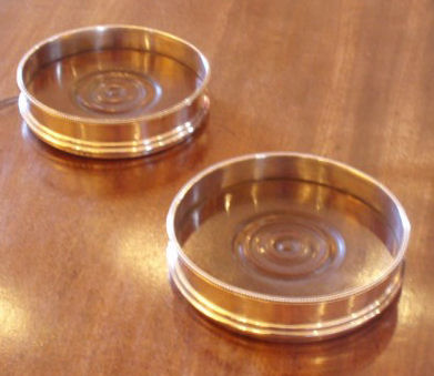 Two similar pairs of George III silver wine coasters