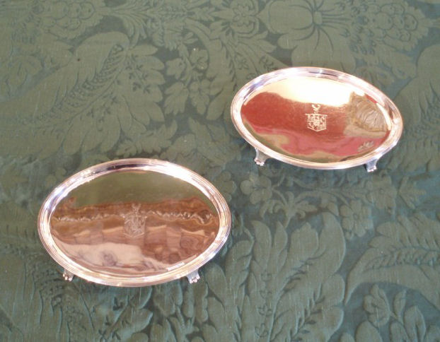 A pair of George III oval silver waiters