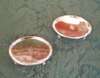 each centred by engraved armorial shield, with reeded rims and scroll feet (2)