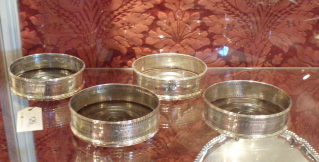 the pierced sides with bright cut foliate decoration and turned wood bases (4)