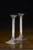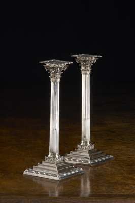 of Corinthian column form, raised on stepped square bases, with an oak leaf reeded edge, engraved crest (2)
