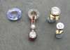 composed of a hooped border of rose cut diamonds, surmounting a tapering border of calibre cut rubies suspending two graduated millegrain collet set old European cut diamonds, the larger diamond within a surround of calibre cut rubies; a 9ct gold mounted illusion set round brilliant cut diamond stud; a colourless gem set stud; an unmounted oval cut pale blue sapphire and a cultured pearl bracelet (5)