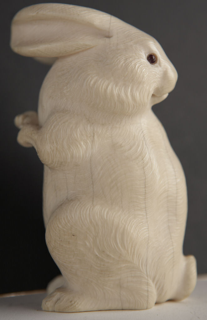 A Japanese carved ivory figure of a hare