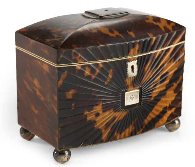 A Regency period bow front tortoiseshell tea caddy