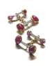 with graduated terminals, each composed of a bar millegrain set with single cut diamonds, also set to each end with a collet set high-domed ruby cabochon