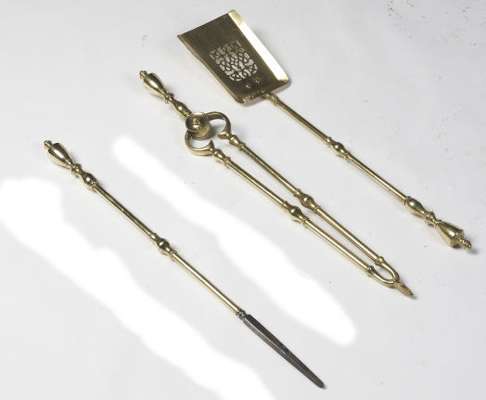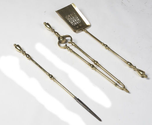 A set of Victorian period brass fire irons