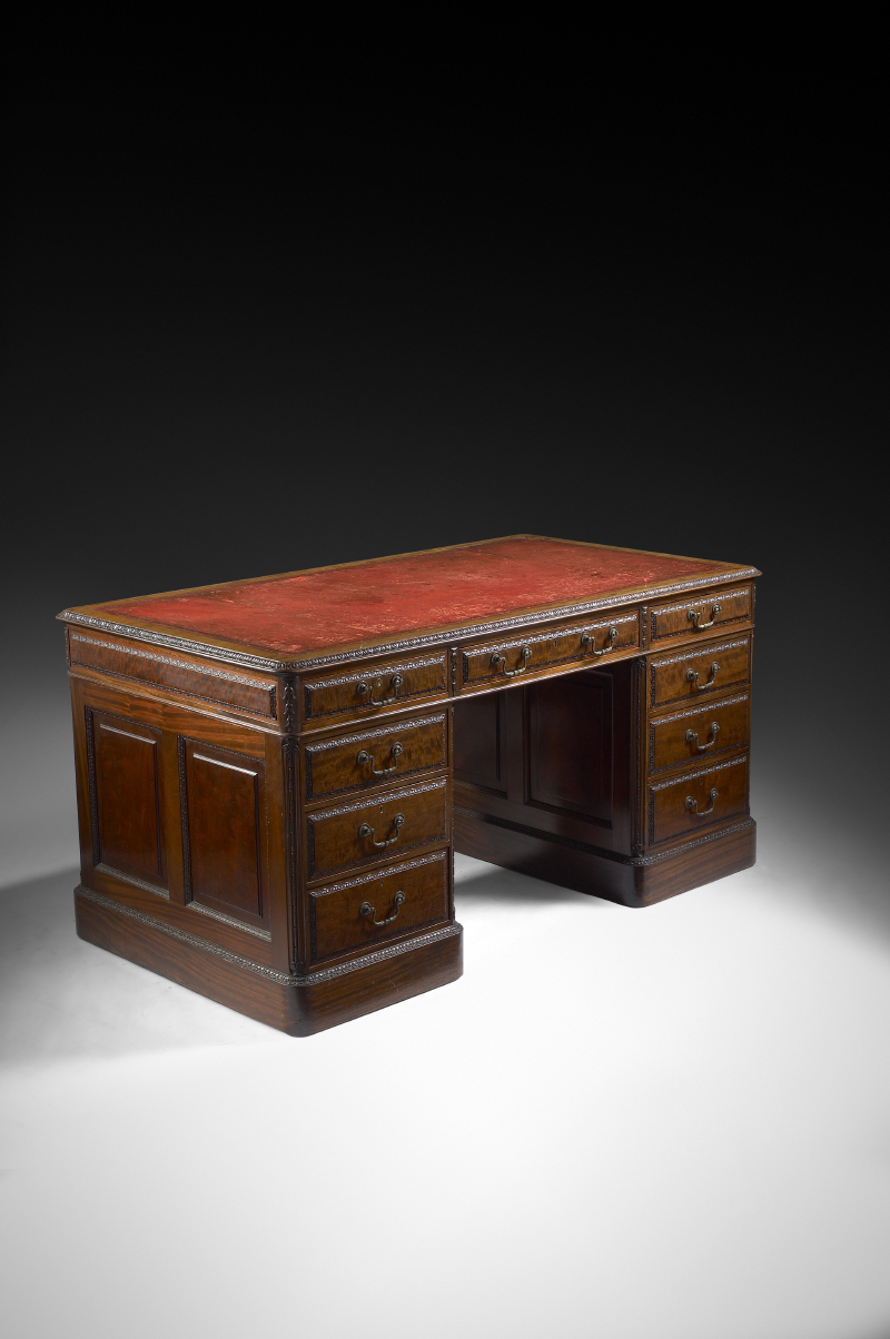 A Victorian period mahogany kneehole pedestal partner’s desk