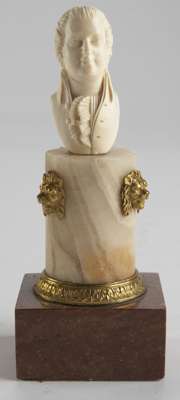 depicting Napoleon, raised on an onyx and marble pedestal base with applied gilt bronze mounts