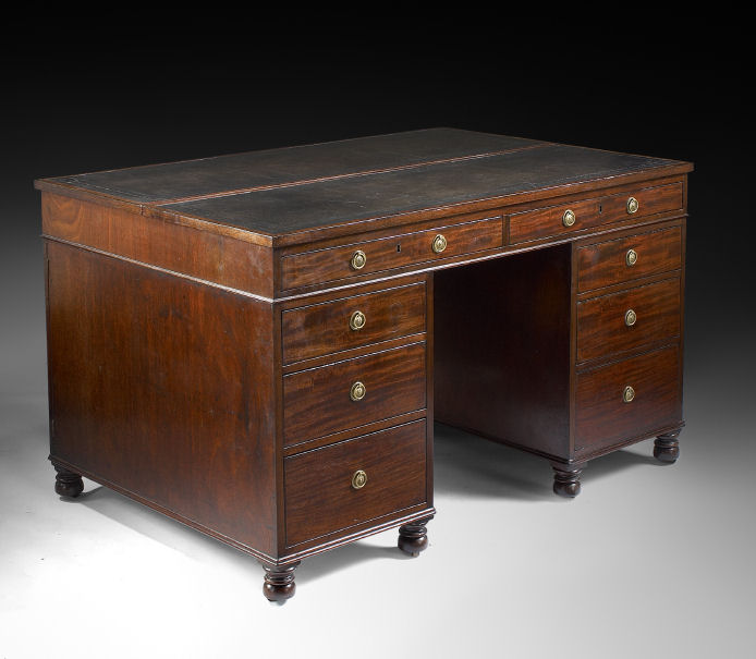 A late George III period mahogany partners desk