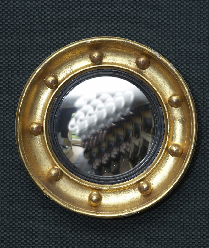 Two pairs of Regency style miniature giltwood convex wall mirrors