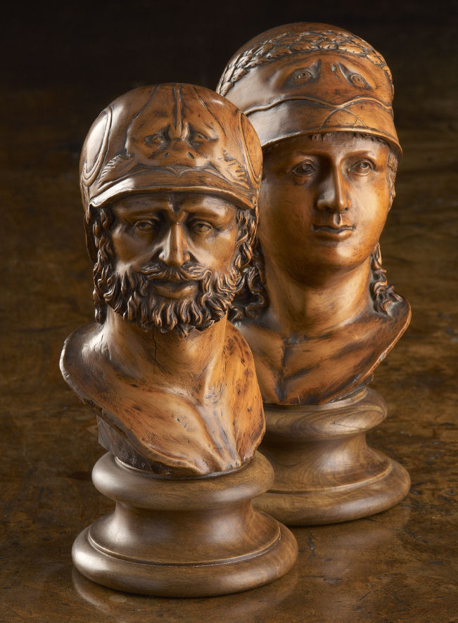 A fine pair of 19th century continental carved fruitwood busts