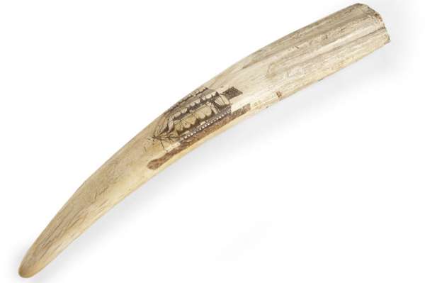 A scrimshaw decorated walrus tusk