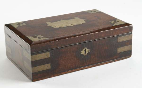 the hinged lid with a counter sunk hurdle, opening to reveal three covered compartments