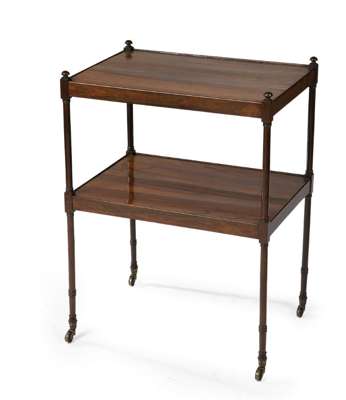 the two rectangular tiers, raised on slender turned supports terminating in brass cappings and casters