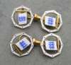 with pierced octagonal terminals each applied to the centre with a flag, decorated with dark blue enamel to a white ground, conjoined by a clasp
