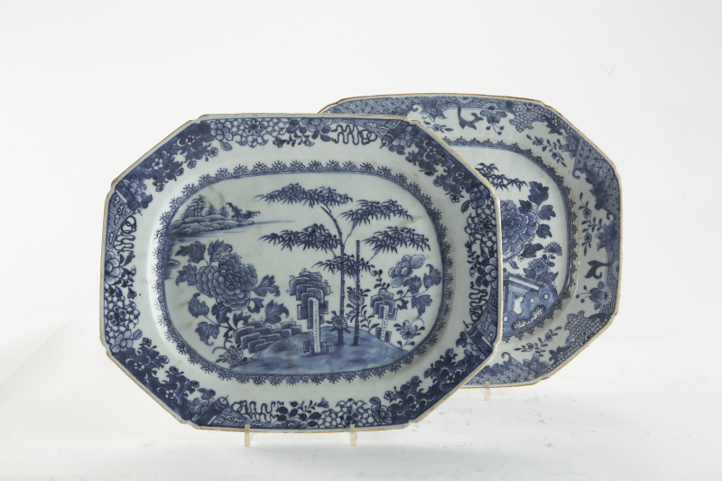 Two 18th century Chinese export porcelain octagonal platters