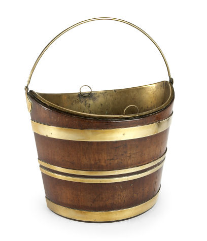 A George III period mahogany and brass banded peat bucket