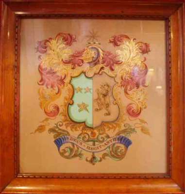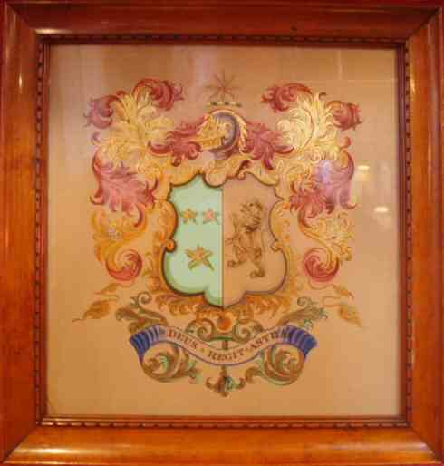 A 19th century frame polychrome & parcel gilt painted Coat of Arms entitled Dues Regit Astra