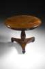 the circular moulded tilt top on a reeded bulbous stem with lobed collar, the triform base with lobed bun feet