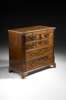 probably North West England, the moulded top above a brushing slide and two short over three long graduated drawers flanked by fluted quarter column corners, on ogee bracket feet