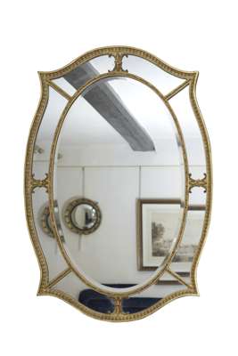 in the George III style, the oval bevelled plate within margin plates and a lappet-clad outer border