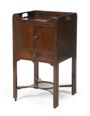 the three-quarter galleried top with pierced carrying handles above a square chamfered legs joined by a dished under tier