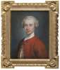 half length, wearing a red coat and white stock