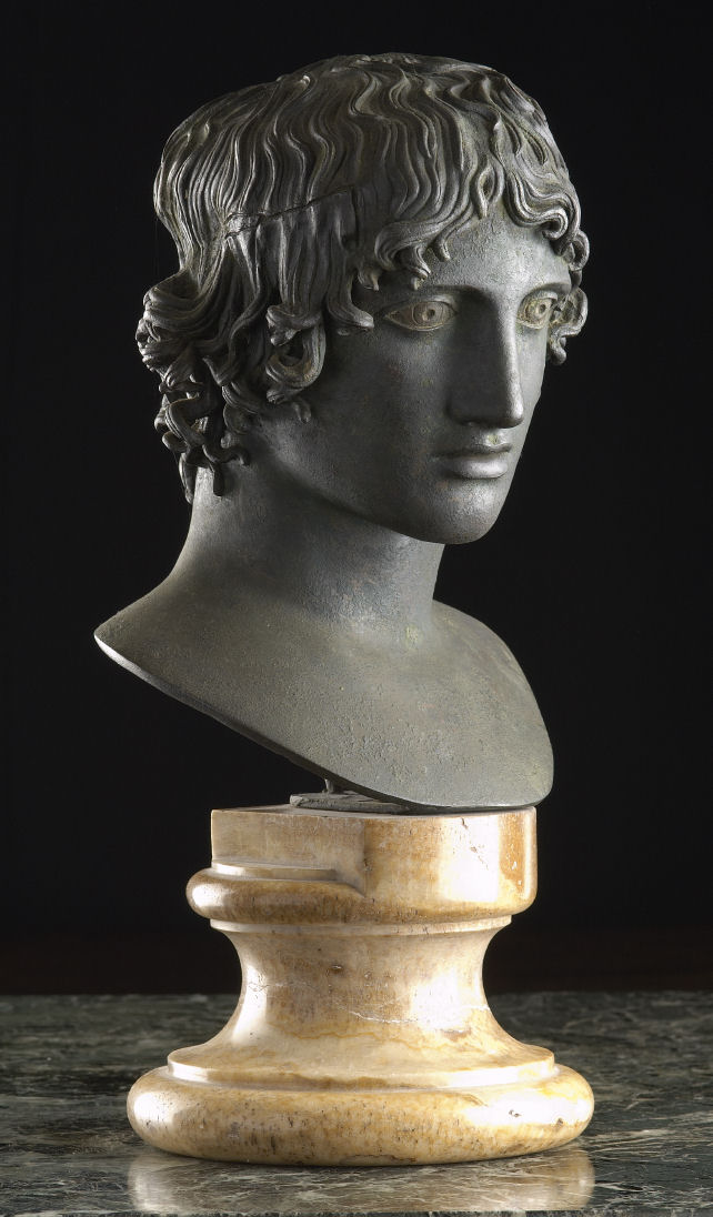 Bronze, brown / green patina, raised on a sienna marble base