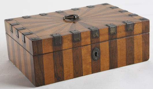 An early 19th century satinwood and rosewood box